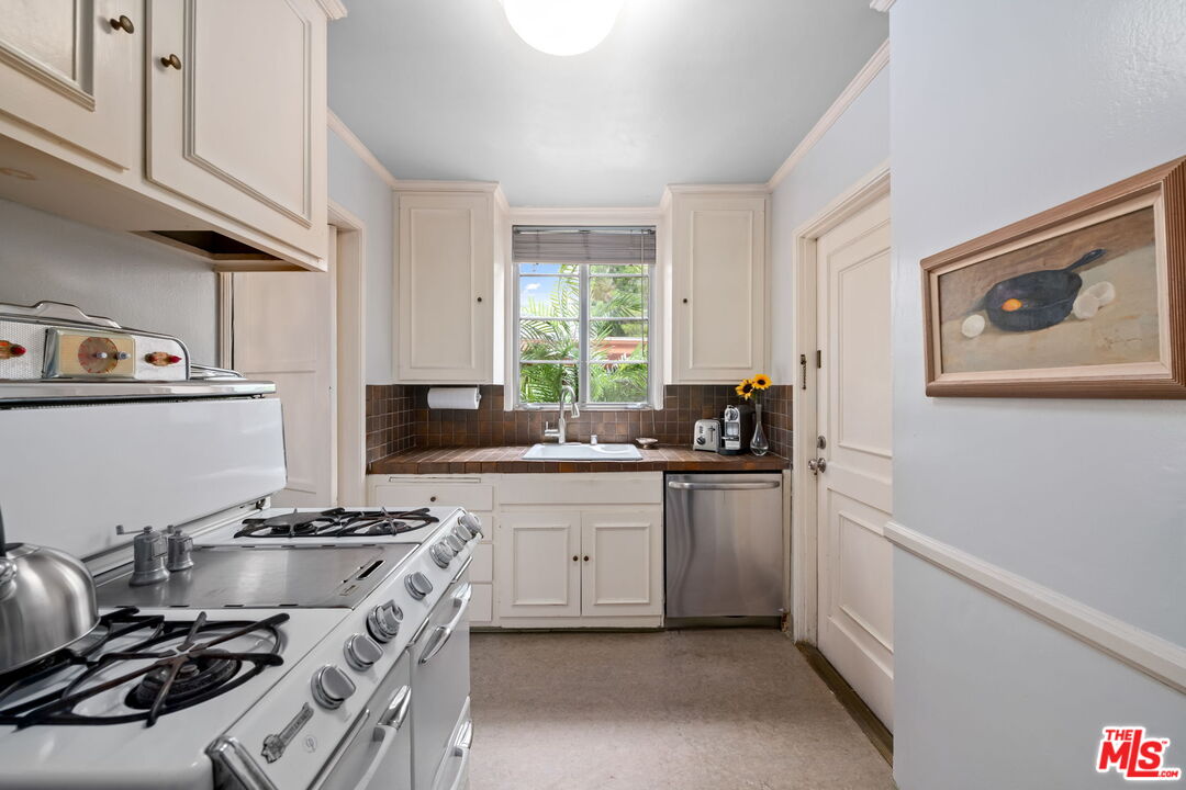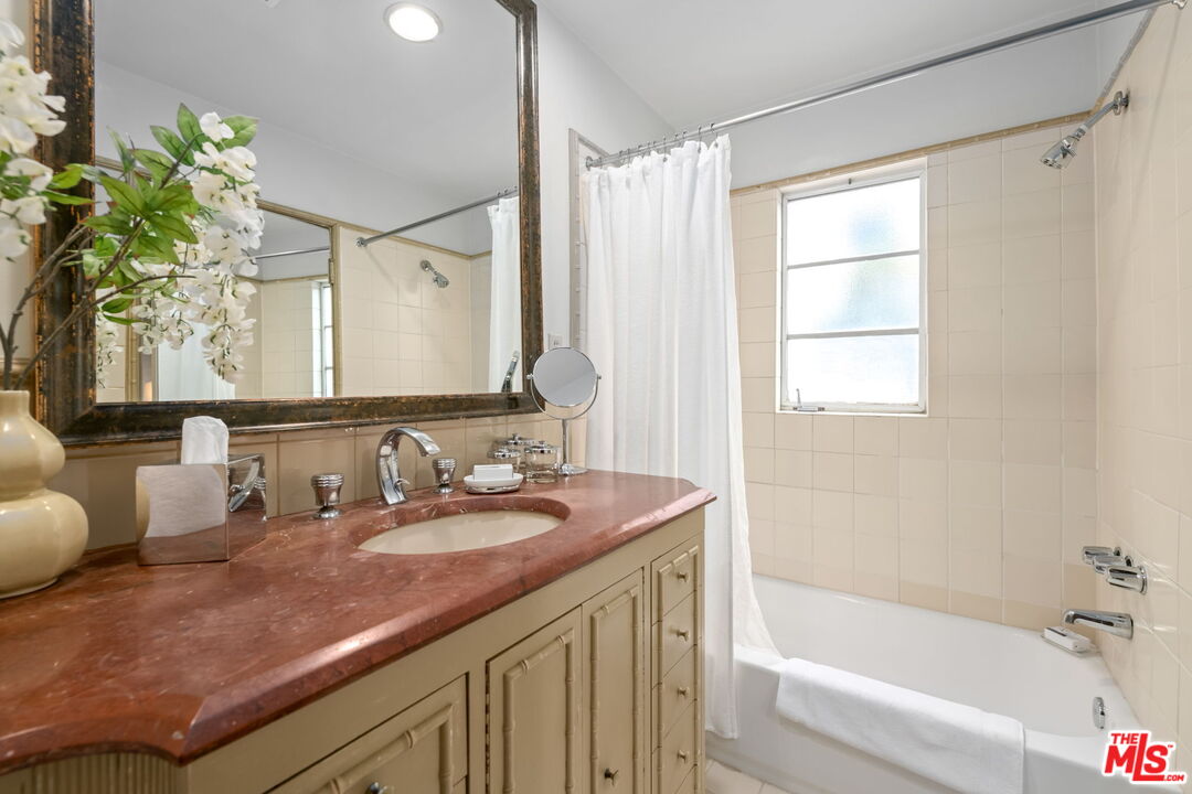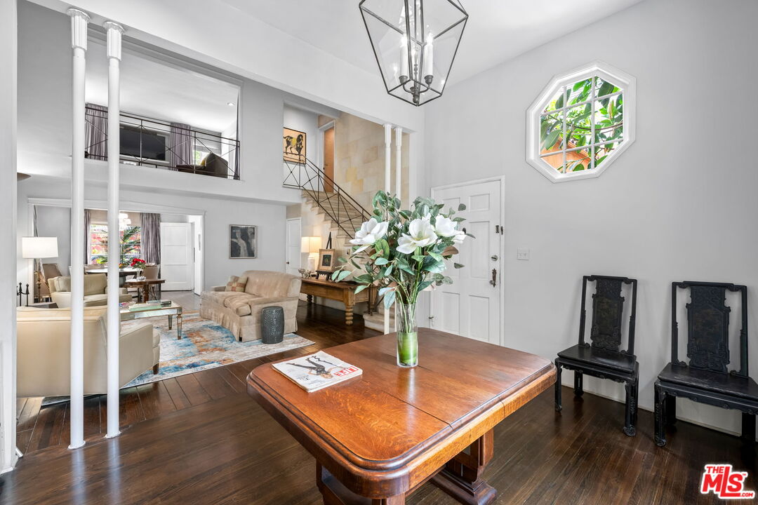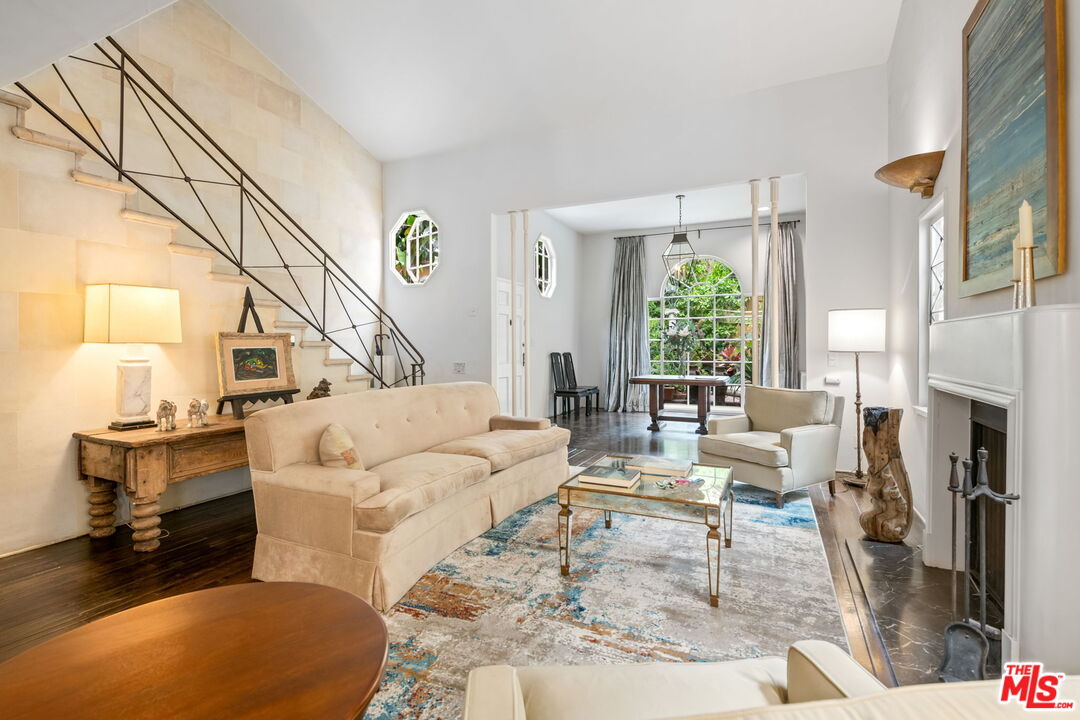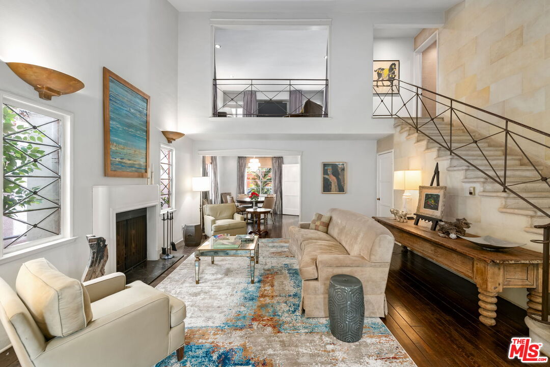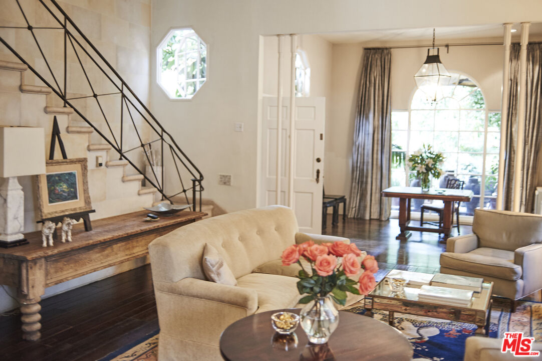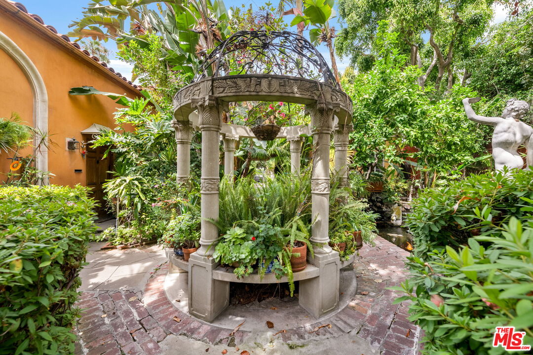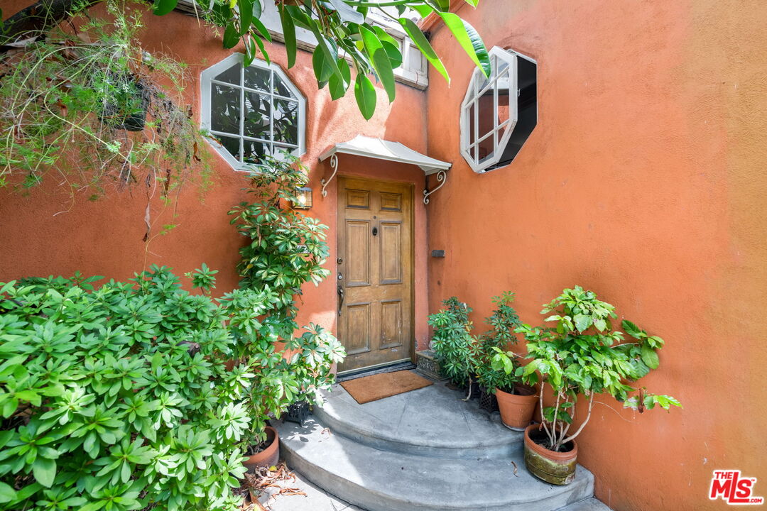 DRAMATIC AND SECLUDED 1930'S COURTYARD TUSCAN VILLA BEHIND GATES. THIS LAVISH OLD HOLLYWOOD 2 LEVEL VILLA, IS BEAUTIFULLY AND COMPLETELY FURNISHED ALL IN HIGHEST QUALITY WITH VINTAGE RUGS, SILK DRAPERIES, ANTIQUES, ORIGINAL ART, FINE LINENS. TALL ARCHED WINDOWS OFF GRACIOUS LIBRARY/ENTRY. GORGEOUS LIVING ROOM WITH 19 FOOT CEILINGS HAS A DECORATIVE FIREPLACE. FORMAL DINING ROOM. KITCHEN COMPLETELY EQUIPPED INCLUDING FINE CHINA, STERLING SILVER & BACCARAT CRYSTAL. GORGEOUS ORIGINAL STAIRCASE LEADS TO A LARGE PRIMARY SUITE WITH AMPLE CLOSETS & STORAGE. HUGE LOFT/MEDIA ROOM THAT CAN CONVERT TO A SECOND BEDROOM WITH PRIVATE BATH & CLOSET. 2-CAR PARKING NEXT TO BACK ENTRANCE. THE LUSH CENTRAL GARDEN, COMPLETE WITH FOUNTAIN, EXOTIC FLORA, TREES, KOI POND AND RESIDENT TURTLES, DEFY THE FACT THAT YOU ARE ONLY A FEW SHORT STEPS FROM SUNSET AND CRESCENT HEIGHTS. IT IS PRIVATE WITH NO COMMON WALLS, QUIET & SECURE.