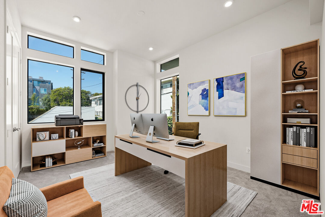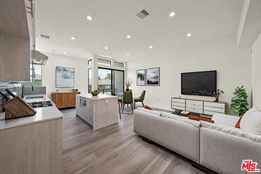 For lease at $6,250/month + rest of September free. Tucked at the end of the building for added privacy, Residence 1204 enjoys open exposure on three sides, flooding the home with natural light throughout the day. This 3-bedroom, 3-bathroom residence spans 1,670 square feet and lives large with elevated finishes, thoughtful layout, and oversized windows in every room. The entry level features a private two-car garage with direct access into the home. Upstairs, the main living area boasts an open-concept layout with a sleek, modern kitchen outfitted with custom cabinetry and high-end appliances perfectly anchoring the bright living and dining areas. A full bathroom and versatile third bedroom ideal as an office, guest suite, or gym complete this level. On the top floor, the serene primary suite includes a spa-like bath, a spacious walk-in closet, and a private balcony that welcomes fresh air and treetop views. A secondary bedroom with its own walk-in closet sits across from a full hallway bath and a conveniently located laundry closet.Crowning the home is a generous private rooftop patio perfect for relaxing or entertaining with sweeping views of the Hollywood Sign and vibrant city sunsets. Whether dining al fresco or lounging under the stars, this outdoor space is a true highlight.Located in the heart of West Hollywood, you're just moments from the best of the cityMelrose Avenue, Santa Monica Boulevard, and neighborhood hotspots like Catch, Craig's, and the Design District. Residence 1204 is a rare opportunity to own or lease a designer home that embodies both elevated living and the energy of WeHo.