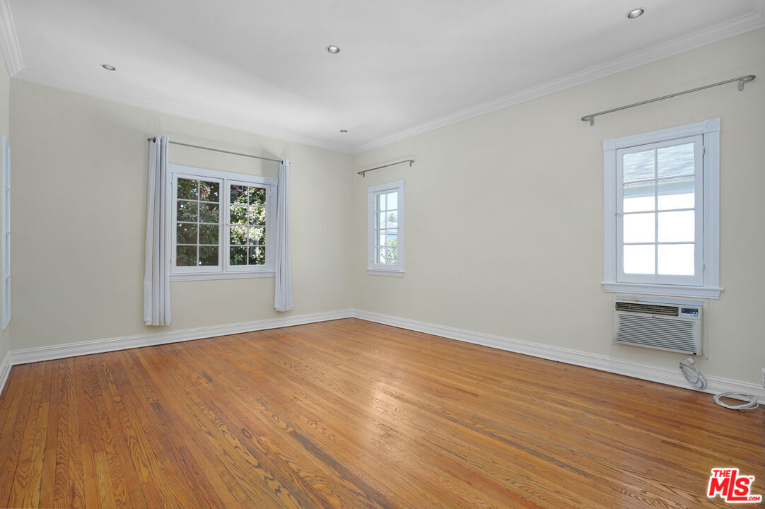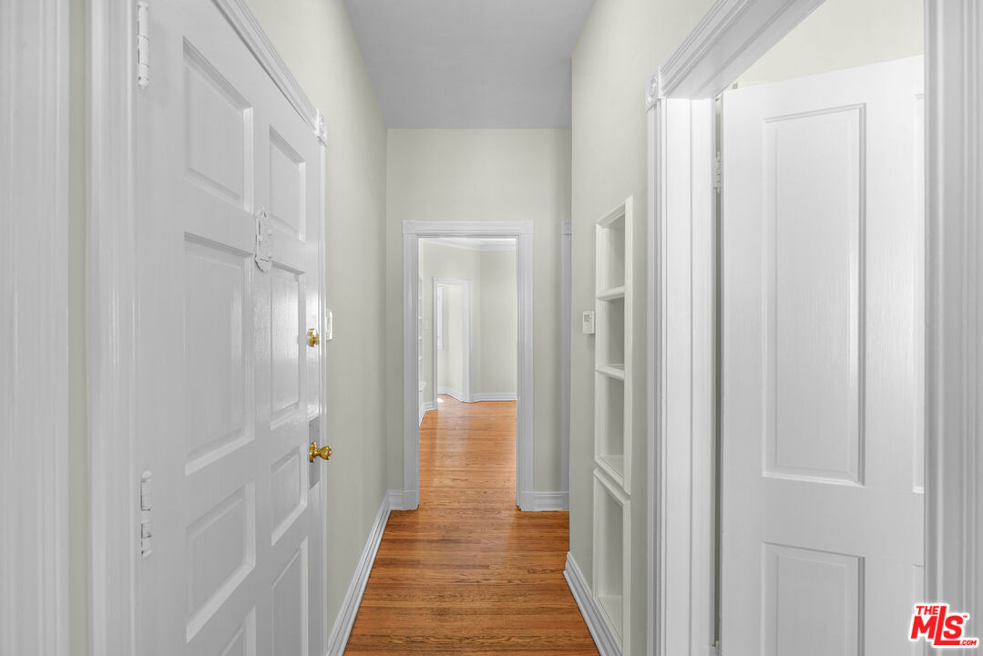 Preserved Old Hollywood garden apartment in a two building complex with total of 10 units. The top floor unit has been tastefully updated to compliment the original design. This is an end unit with windows on 3 sides that allows for exceptional ventilation. Additional side entrance that allows easy loading and unloading packages. Original hardwood flooring, high ceilings and large windows. Unusual amount of closets - 5 total - and unusually large bedroom. In unit washer and dryer. Covered parking with additional carport storage.