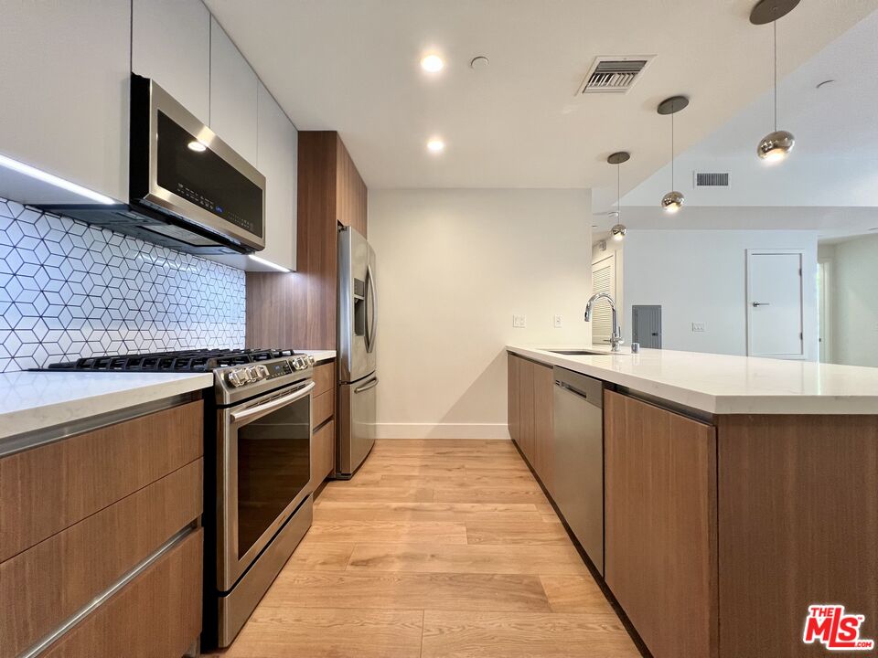 Empire at Norton is where luxury and inspiration meet. It's laidback luxe in the heart of West Hollywood. A celebration of luxury, sustainability, modernism, and style. Empire Property Group proudly presents this unparalleled 2-bedroom, 2-bath residence at Empire at Norton. This expansive 1,380 SF corner home offers an unmatched 750 SF of private outdoor living spaces, including both a serene patio and a private backyard perfect for relaxing or entertaining under the Los Angeles sun. Eastern and northern exposures pair with floor-to-ceiling windows to create a tranquil ambiance and frame beautiful views of the home's outdoor spaces. The modern kitchen features Italian-designed cabinetry, marbled quartz countertops, and premium stainless steel Samsung appliances. Additional highlights include 9+ ceilings, in-unit washer and dryer, abundant storage, and customizable closet solutions. This is a one-of-a-kind opportunity to experience luxury living in the heart of West Hollywood.