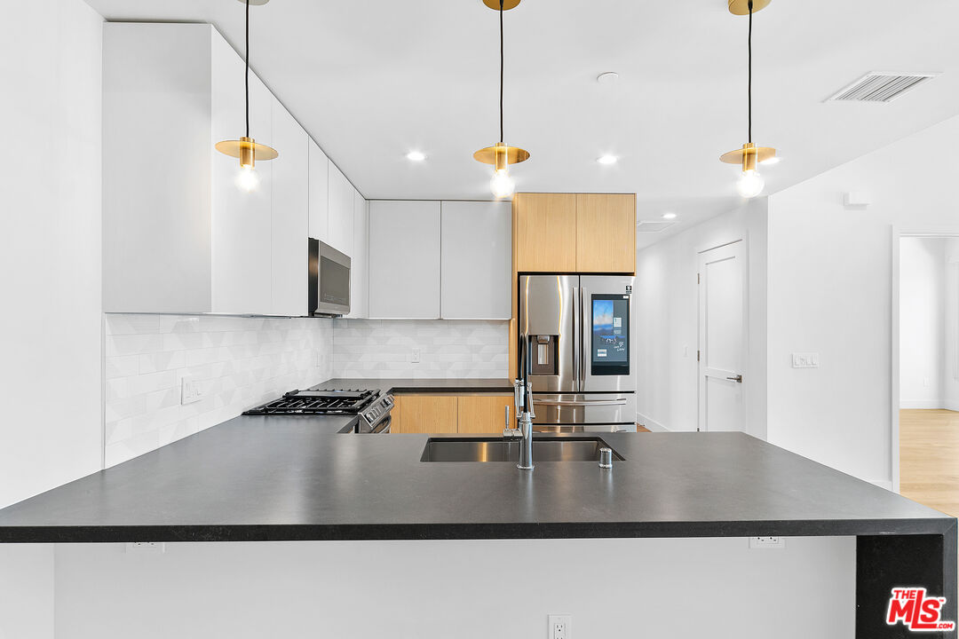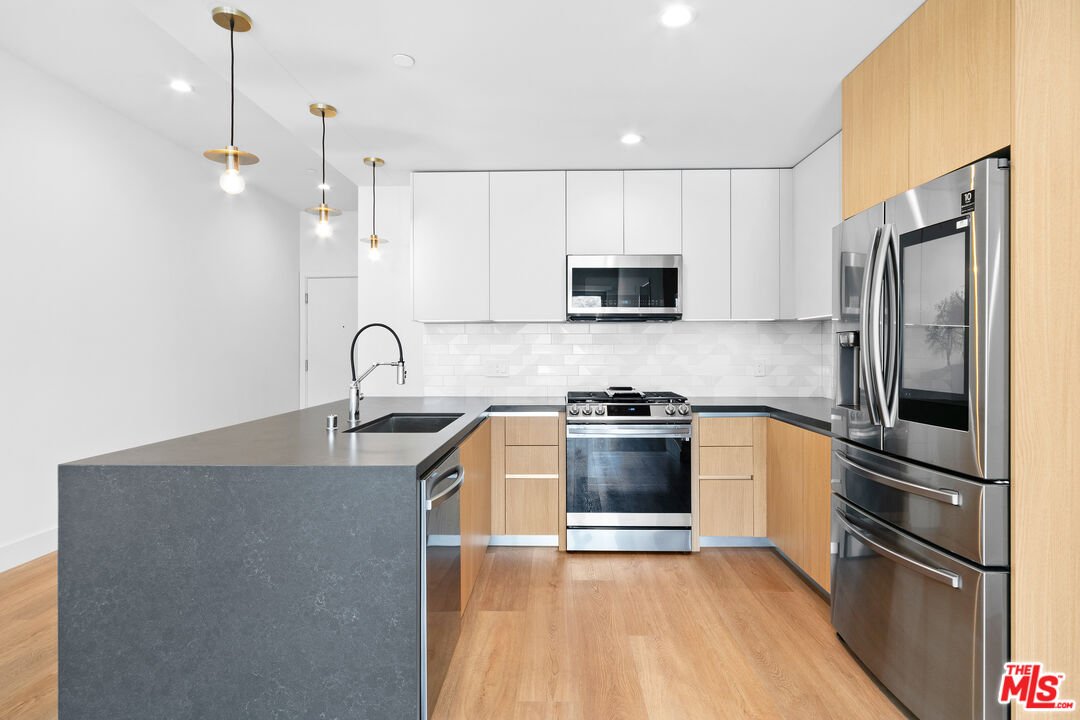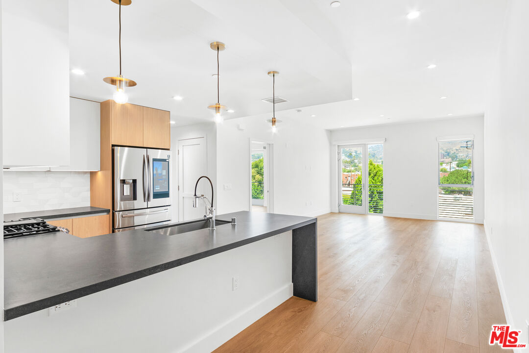 Empire at Fairfax is proud to present this stunning, one-of-a-kind 2-bedroom, 2-bath penthouse residence for lease. This 1,155 SF corner unit boasts western and northern exposures, offering breathtaking vistas and abundant natural light. Penthouse PH4 showcases premium finishes and a contemporary design that flows effortlessly throughout the open floor plan. Wide-plank flooring, quartz countertops, Italian-designed cabinetry, high-end Samsung and Bosch appliances, and floor-to-ceiling windows are just a few of the luxurious details that make this penthouse truly exceptional. With sweeping views from Century City to the Hollywood Hills, PH4 delivers everything you're looking for in your next home. Take in unparalleled city views from the spacious rooftop sundeck, complete with a covered cabana TV lounge, pool table, and fully equipped BBQ stations where alfresco dining opportunities abound. Take a dip in our heated plunge pool or up your workout game in our fitness center. You can even pamper your pooch in our pet-washing and gated dog-walk area. With spacious floor plans, a myriad of amenities, and a prime West Hollywood location, Empire at Fairfax delivers the chic design and convenience you've been looking for.