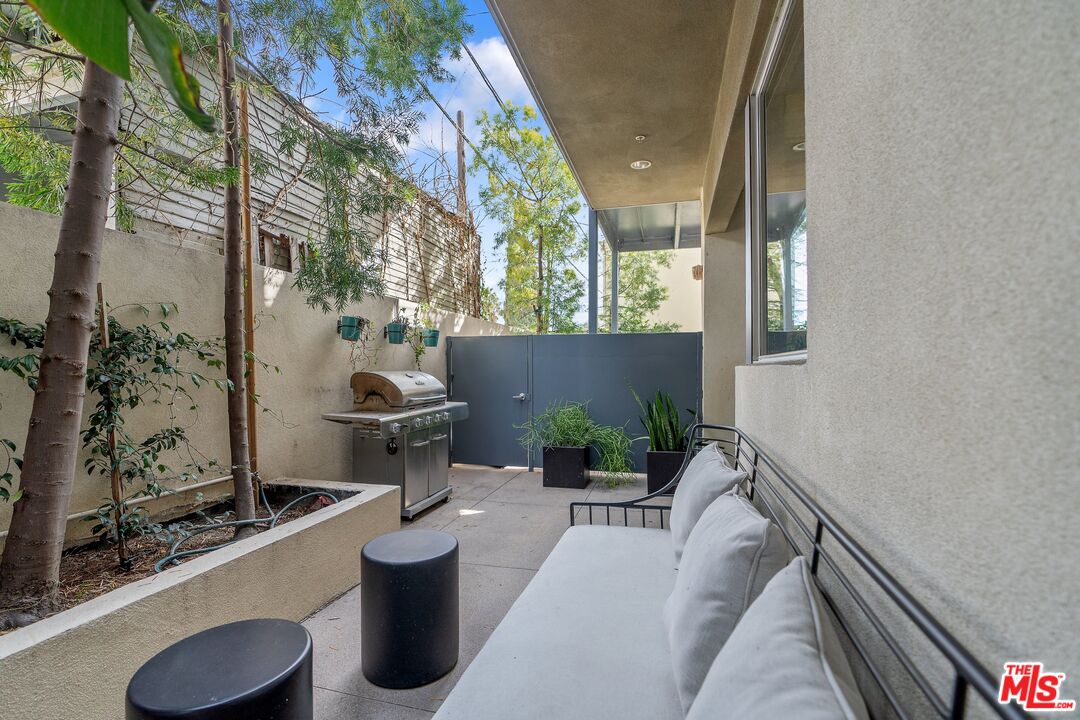 Welcome to the prestigious Harper West Hollywood Condominiums (Historically known as the Ramona Courtyards), where the elegance of 1920s Old Hollywood meets refined modern living. Nestled within beautifully landscaped courtyards featuring tranquil fountains and inviting gathering spaces, this sophisticated corner unit offers an unparalleled residential experience. Fully furnished and impeccably designed, this turn-key home boasts designer finishes, curated furnishings, and premium amenities, ensuring effortless luxury. Step into the sunlit living area, where tall windows, a stately fireplace, and exquisite stone-like flooring create an atmosphere of warmth and sophistication. The open-concept layout flows seamlessly into the gourmet kitchen, a chef's dream equipped with top-tier appliances and elegant finishes. The adjacent dining area overlooks a private outdoor patio, complete with stylish seating and a BBQ, an ideal setting for refined entertaining. The primary suite is a sanctuary of elegance, featuring a spa-inspired en-suite bath and expansive closet space. A versatile second bedroom or office and an additional beautifully appointed bathroom complete this remarkable condo. Additional features include two secure underground parking spaces and an unbeatable location on a picturesque tree-lined street, just moments from renowned restaurants, gourmet markets, and upscale shopping. Simply bring your toothbrush, this exceptional residence provides everything else. Some artwork may be excluded from the lease. Property is also available for sale at $1,299,000