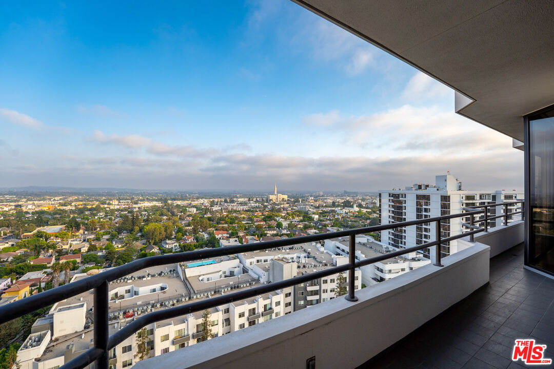 Welcome to one of the most coveted addresses on the Wilshire Corridor, Wilshire House, the only "A" building with wrap-around balconies. This completely remodeled southwest-facing residence showcases spectacular city vistas, ocean views, and Catalina Island on a clear day, all framed by floor-to-ceiling glass and a balcony that spans the length of the condo. Step into a grand marble entry that flows into a sophisticated living space with hardwood floors and abundant natural light, ideal for entertaining. The dining room opens to the stunning views and features a one-of-a-kind custom bar designed for unforgettable gatherings. The kitchen offers new appliances and elegant finishes. The luxurious primary suite boasts two walk-in closets and a marble bath. The second bedroom with its own bath works beautifully as a guest room, den, or home office. Special features include a built-in wine cellar and custom leather floors in the dining room and primary bedroom. Wilshire House Amenities: 24-hour valet & security, In-house engineers for on-demand repairs, lit tennis court, Saline swimming pool, & spa, fire pit & outdoor entertaining area, State-of-the-art fitness center, Recreation/banquet room, library, elegant lobby with a tranquil waterfall feature. No open houses permitted; private tours available by appointment.