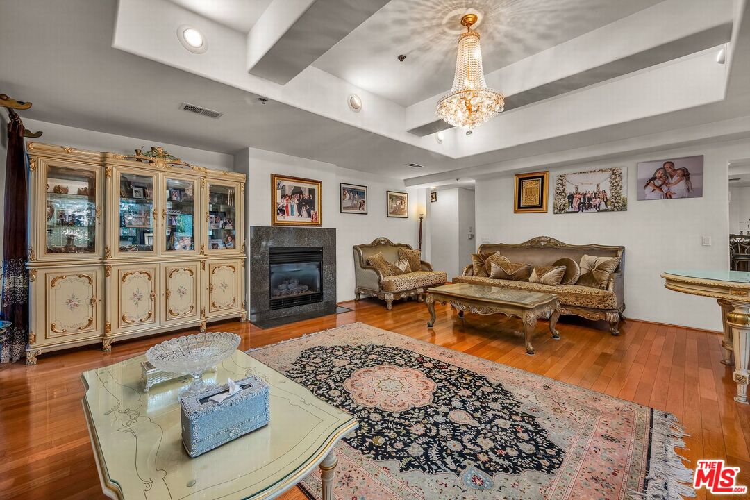 This exquisite corner condominium is nestled in the prestigious Wilshire Corridor, just moments away from Holmby Hills Park and conveniently close to UCLA. Boasting three generously sized bedrooms and three bathrooms, this home features a sophisticated open floor plan. Enjoy seamless indoor-outdoor living with access to a sprawling balcony from the living room, perfect for entertaining. The unit also features a cozy fireplace, a chic breakfast nook, and a stylish bar area. Residents can indulge in the rooftop common area, offering breathtaking views of the mountains and city lights. With nine guest parking spaces and a spacious, private storage unit, this residence seamlessly combines luxury and convenience. Additionally, the building is meticulously maintained and offers a low HOA, ensuring a pristine living environment. This unique opportunity won't last long!
