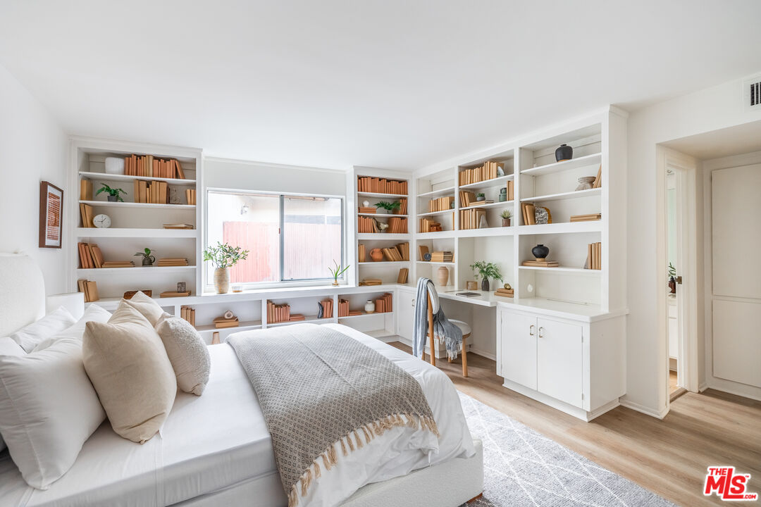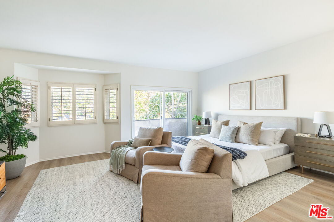 An exceptional over-1,900-square-foot luxury townhome in one of Westwood's most coveted residential enclaves, surrounded by single-family homes on a beautifully tree-lined street and just moments from prestigious Fairburn Avenue Elementary. This rare offering is enormous in scale, living far more like a private home than a condo, with exceptional square footage and a thoughtful, spacious layout. The dramatic living room, designed like a true great room, features expansive windows with custom plantation shutters, and abundant natural light, creating an impressive yet inviting space for everyday living and entertaining. A versatile lower-level flex/basement space adds exceptional functionality, ideal for a media room, gym, or office. The chef's kitchen is exceptionally large, featuring brand-new appliances, generous counter space, a dedicated breakfast area, and an additional bar counter. The spacious primary bedroom is a serene retreat with multiple windows enhanced by custom plantation shutters, a charming windowed alcove, sliding glass doors to a private balcony, a huge walk-in closet, and a very large spa-style bathroom, while the guest bedroom is generously sized and thoughtfully appointed with custom built-ins. Laundry in unit. Two car side-by-side parking with direct access to home. HOA dues include Earthquake Insurance. Be prepared to cherish this healthy lifestyle and exclusive living.