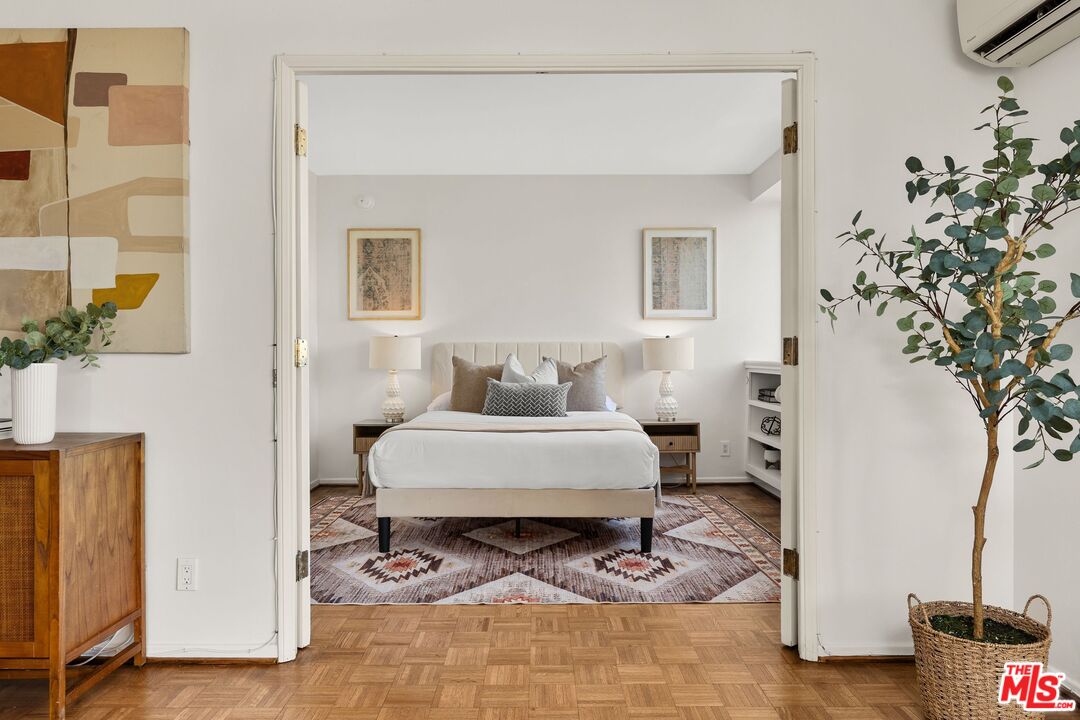Welcome to Park Westwood Towers, an iconic high-rise in the heart of Westwood Village, located just one block from UCLA. Designed by acclaimed architect Victor Gruen, this New York-style building pairs timeless design with modern-day comfort. This light-filled 1-bedroom, 1-bath condo features wide city views through wall-to-wall windows with a smart, flexible layout. The brand-new kitchen is both stylish and functional, with crisp white cabinetry, stone countertops, new stainless steel appliances (including a wine fridge), and a chic tile backsplash. The kitchen flows into an open-concept living and dining area, ideal for connected everyday living. French doors open from the bedroom to the living space, bringing in even more natural light and allowing for versatile use. The newly remodeled bathroom includes a large walk-in shower with floor-to-ceiling tile and designer finishes. Refinished parquet wood floors, split-zone heating and air, high ceilings, and fresh paint create a clean, inviting feel, while abundant closet space, including a walk-in, offers excellent storage. Park Westwood Towers offers 24-hour doorman, valet guest parking, an elegant lobby, onsite management, and a heated pool and spa. HOA dues of $1,101/month cover almost everything -- water, sewer, trash, cable, internet, free community laundry and one gated parking space. With UCLA, restaurants, shopping, Trader Joe's, the W Hotel, and more just outside your door, this turnkey condo offers style, convenience, and comfort in one of Westwood Village's most desirable addresses.